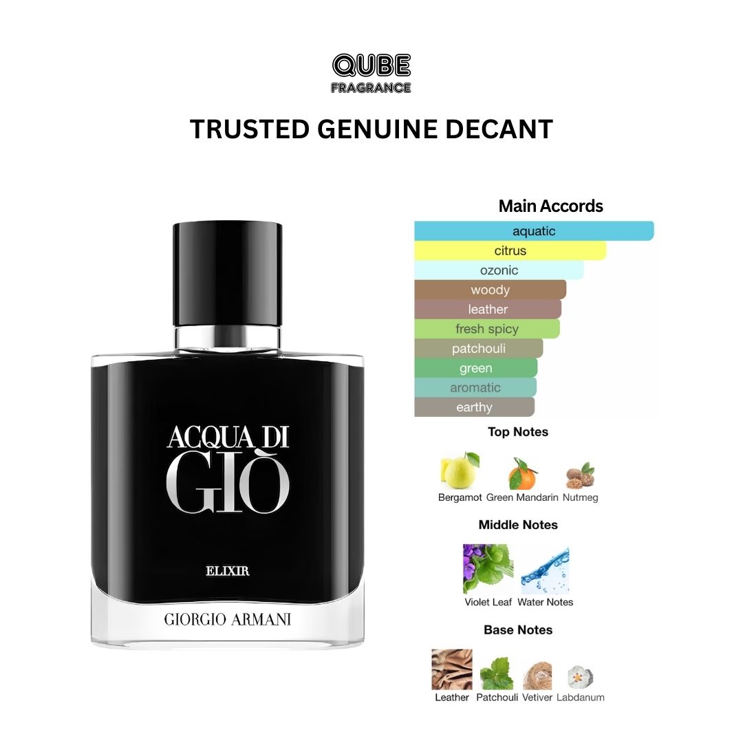 About the Fragrance Acqua di Giò ElixirĀ byĀ Giorgio ArmaniĀ is a Woody Aromatic fragrance for men. This is a new fragrance.Ā Acqua di Giò ElixirĀ was launched in 2025. The nose behind this fragrance is Alberto Morillas. Top notes are Bergamot, Green Mandarin and Nutmeg; middle notes are Violet Leaf and Water Notes; base notes are Leather, Patchouli, Vetiver…