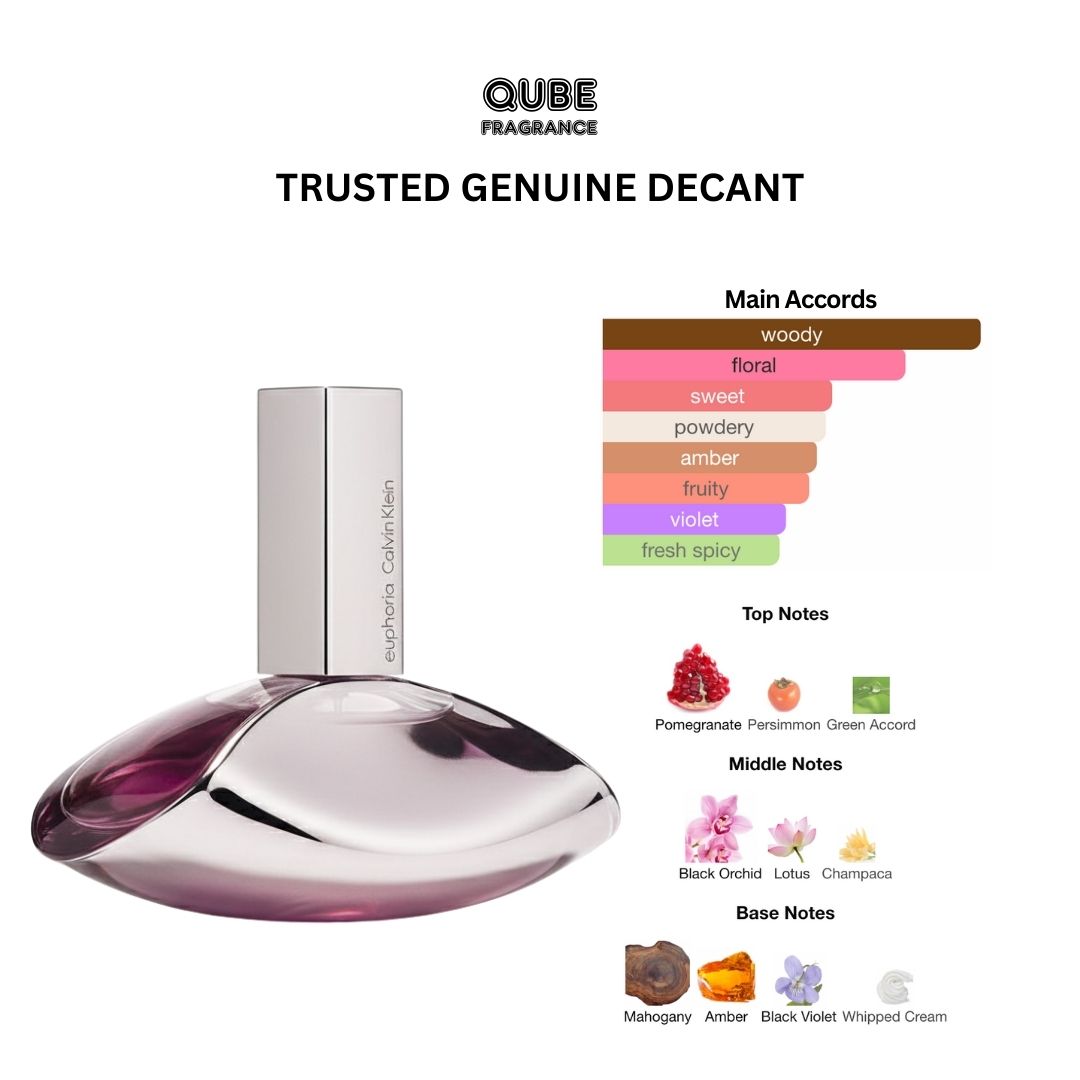 Euphoria by Calvin Klein is a Oriental Floral fragrance for women. Euphoria was launched in 2005. Euphoria was created by Dominique Ropion, Carlos Benaïm and Loc Dong. Top notes are Pomegranate, Persimmon and Green Accord; middle notes are Black Orchid, Lotus and Champaca; base notes are Mahogany, Amber, Black Violet and Whipped Cream. This perfume is the winner of award FiFi Award Fragrance Of The Year Women`s Luxe 2006.