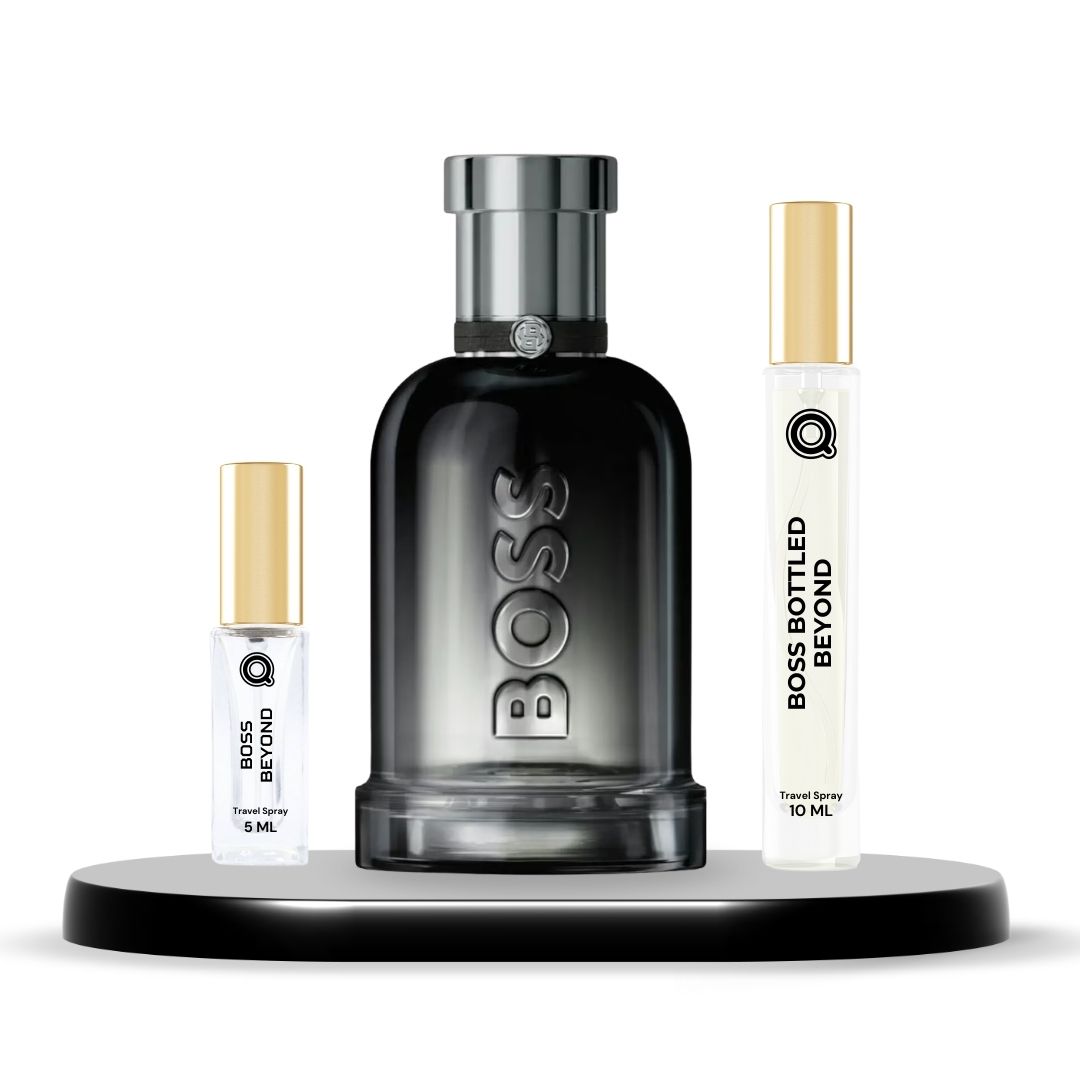 Boss Bottled Beyond by Hugo Boss is a Leather fragrance for men. This is a new fragrance. Boss Bottled Beyond was launched in 2025. Boss Bottled Beyond was created by Daphné Bugey, Frank Voelkl and Bruno Jovanovic. Top note is Ginger; middle note is Leather; base note is Woody Notes.