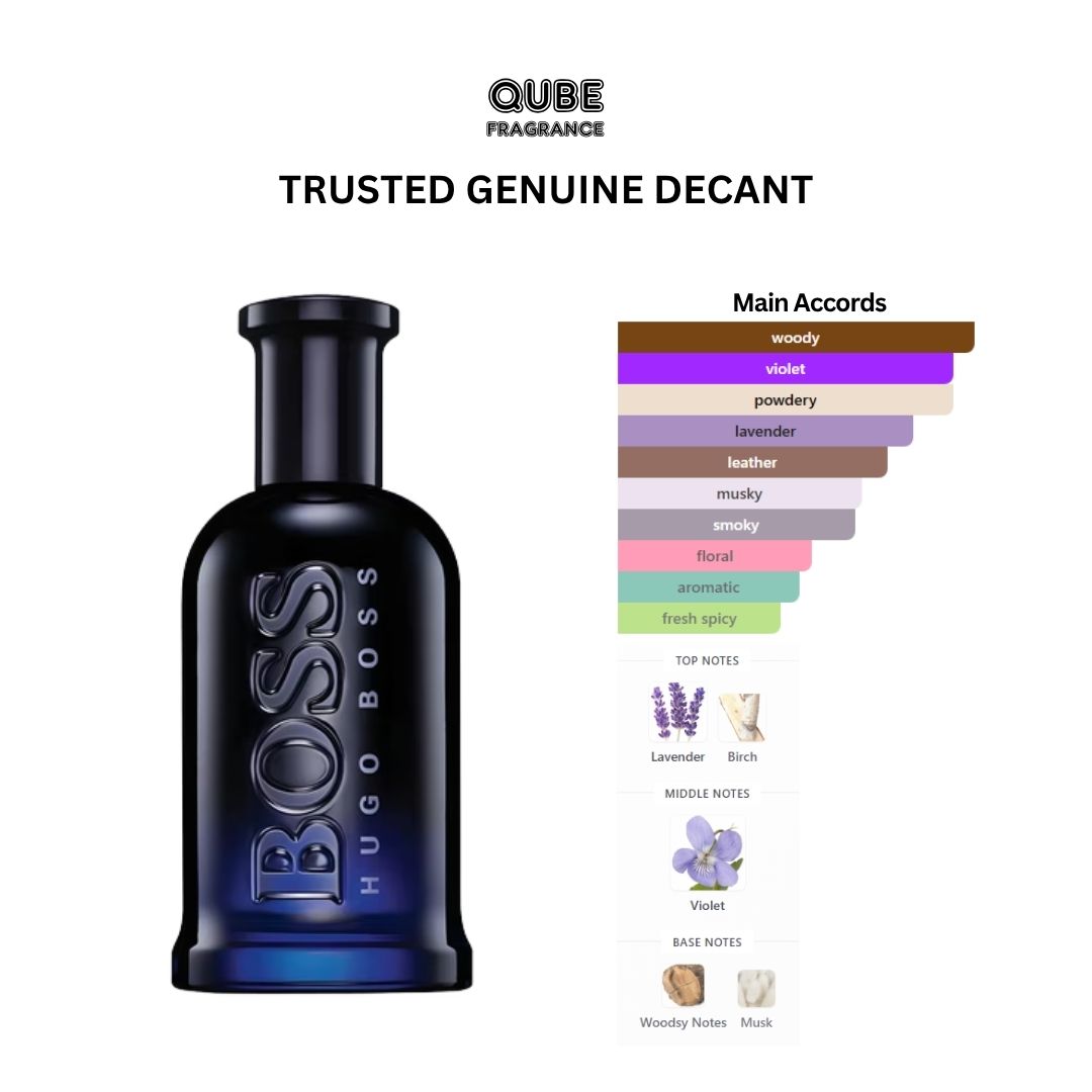 Boss Bottled Night by Hugo Boss is a Woody Aromatic fragrance for men. Boss Bottled Night was launched in 2010. Top notes are Lavender and Birch; middle note is Violet; base notes are Woodsy Notes and Musk.