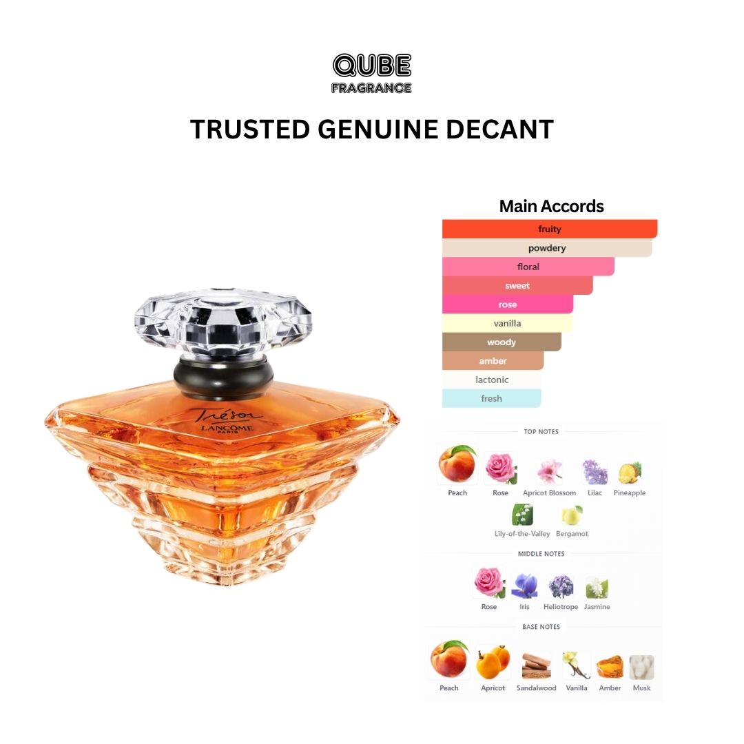 Trésor by Lancôme is a Oriental Floral fragrance for women. Trésor was launched in 1990. This is new batch. The nose behind this fragrance is Sophia Grojsman. Top notes are Peach, Rose, Apricot Blossom, Lilac, Pineapple, Lily-of-the-Valley and Bergamot; middle notes are Rose, Iris, Heliotrope and Jasmine; base notes are Peach, Apricot, Sandalwood, Vanilla, Amber and Musk.