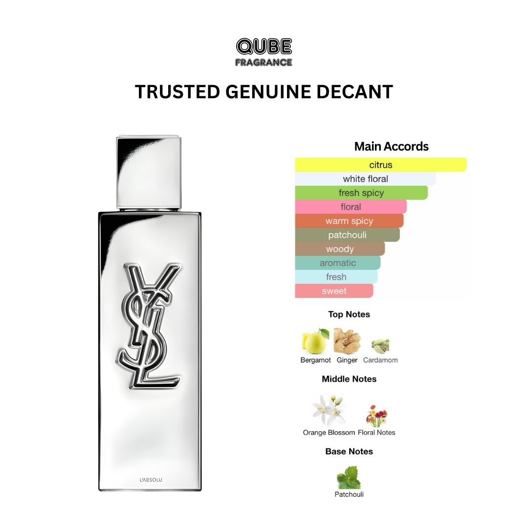 MYSLF L’Absolu by Yves Saint Laurent (YSL) is a Woody Spicy fragrance for men. This is a new fragrance. MYSLF L’Absolu was launched in 2025. The nose behind this fragrance is Christophe Raynaud. Top notes are Bergamot, Ginger and Cardamom; middle notes are Orange Blossom and Floral Notes; base note is Patchouli.